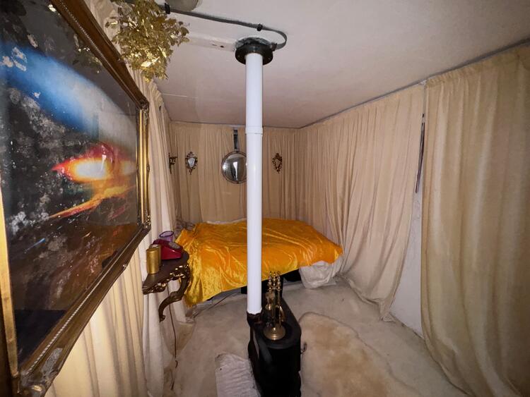 The bunker is secure, dry and in its original condition, the current owner has refurbished and decorated it in readiness for its new owner. There are wall to wall velvet curtains, a cream carpet, a made bed, a log burner, storage and even a rug to make it as homely as possible. The owner has advised there is an unused and still boxed chemical toilet, they also recommend for the wood burning stove to be serviced before being used due to safety purposes.