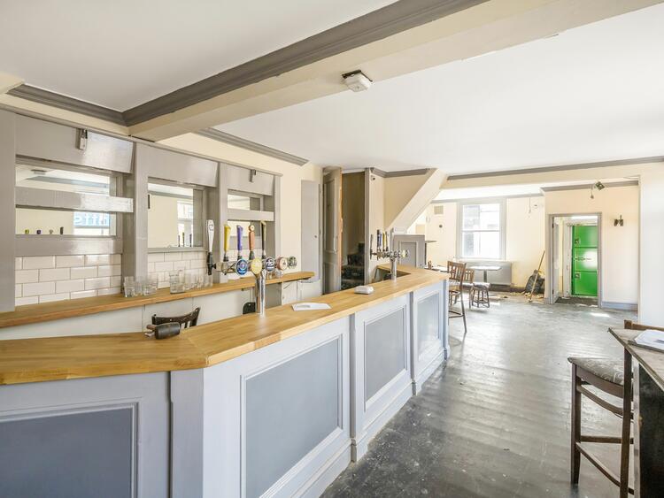 Open plan trading accommodation with bar servery, customer toilets, and access to rear beer garden.