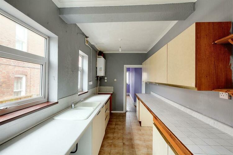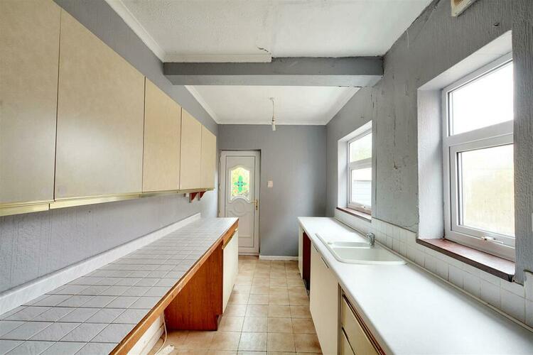 With a range of wall, base and drawer units and inset one and a half bowl sink with drainer. Space and fittings for freestanding gas oven, fridge/freezer, washing machine and dryer. Two UPVC double glazed windows to the side aspect and door to the rear garden.