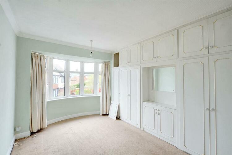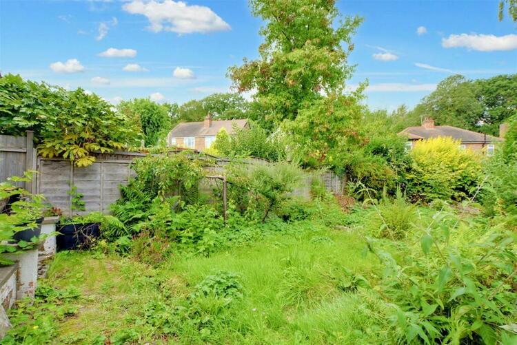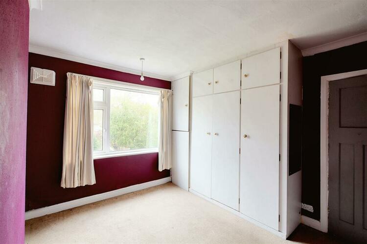To the front the property has mature shrubs and a driveway to the side leading to a garage. There is side access to the rear garden with a lawned space and mature shrubs.