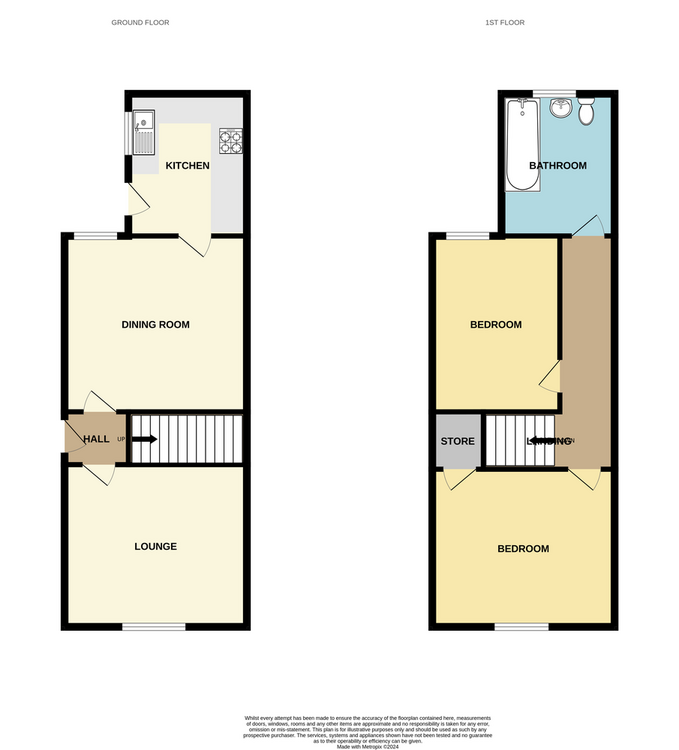 The accommodation comprises of a hallway, two reception rooms, kitchen, two bedrooms and first floor bathroom.