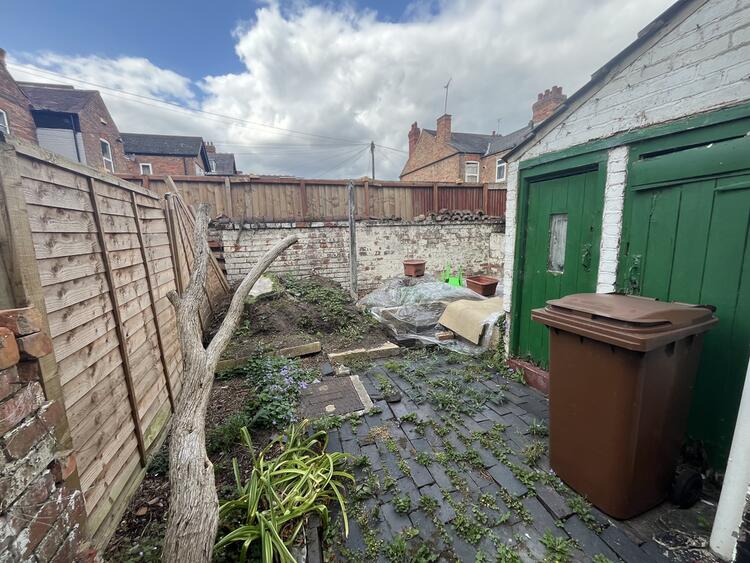 Path to the side leads to the side door and reception hallway. Rear garden has seating area, two brick outbuildings and is enclosed by fencing and brick wall.