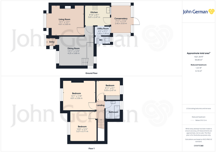 There is a conservatory, which has an electric heater and windows in wooden frames and door opening onto rear garden.