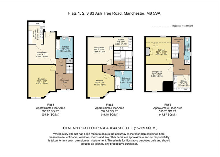 The three flats are all one bedroom and are fully let on Assured Tenancies, giving a combined income of £23,400 per annum.
