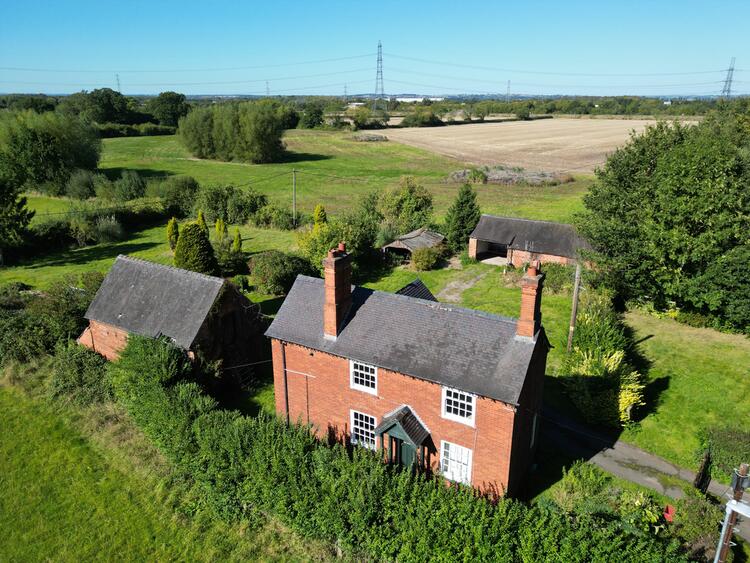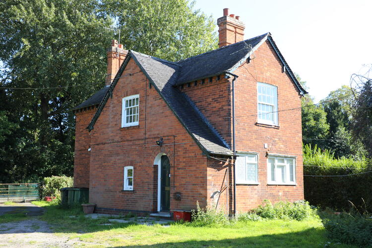 A two storey Estate Farm Cottage built circa. 1936 constructed in brick with Staffordshire blue roof tiles.