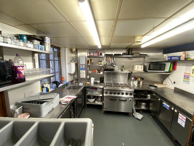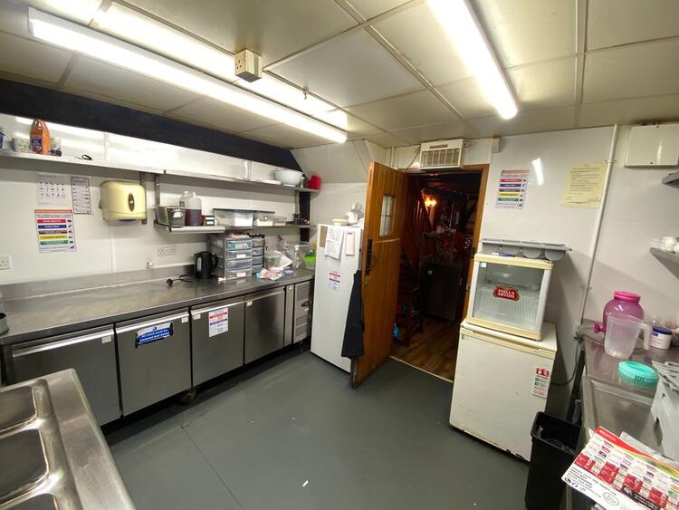 Ground Floor: The ground floor features a 12-cover dining area, a main counter servery, and a fully fitted kitchen.