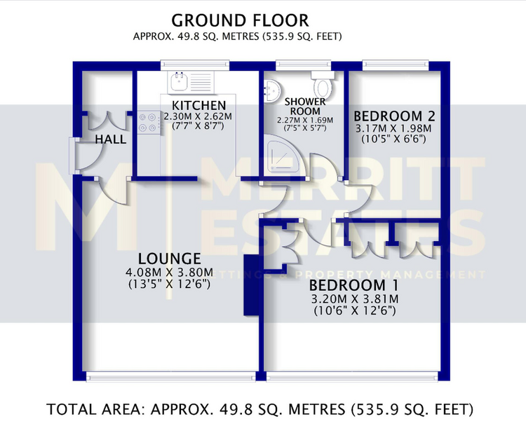 On entering the apartment, there is storage space in the hallway, providing access to the lounge, off which you can find the kitchen with fitted appliances. Leading from the living room is a small internal hallway, providing access to the two double bedrooms and the spacious family shower room. The master bedroom comes with fitted wardrobes providing ample storage space.