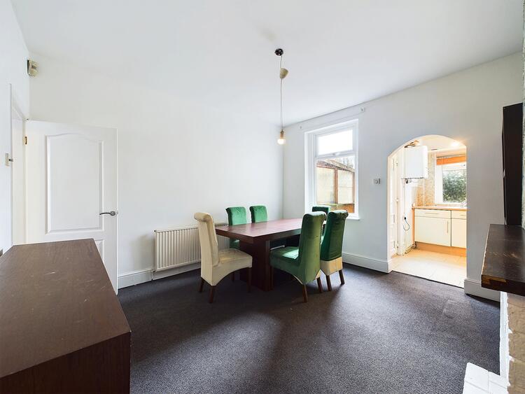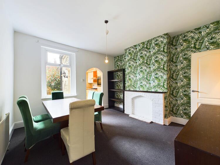 In brief the property comprises of bay fronted sitting room and then a inner vestibule with stairs rising to the first floor. There is a dining room that has access down to the cellar and is also open to the kitchen. The first floor has two bedrooms, a bathroom appointed with a white suite having a shower over the bath and then there is a access to a further bedroom in the attic space. To the front of the property there is a small yard area behind a wall perimeter and there is a courtyard rear garden which is a pleasant seating area and has a brick store too.
