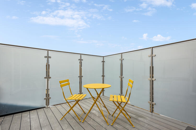 The property boasts an open plan kitchen living room and private roof terrace.
