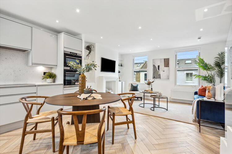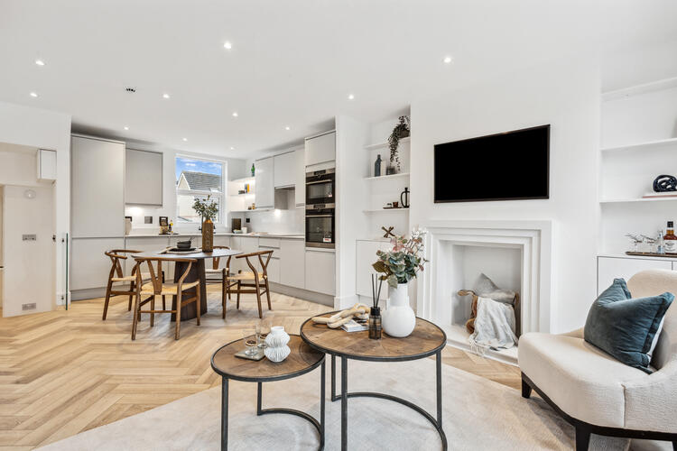 A perfectly finished two double bedroom, two bathroom period conversion on a residential street.