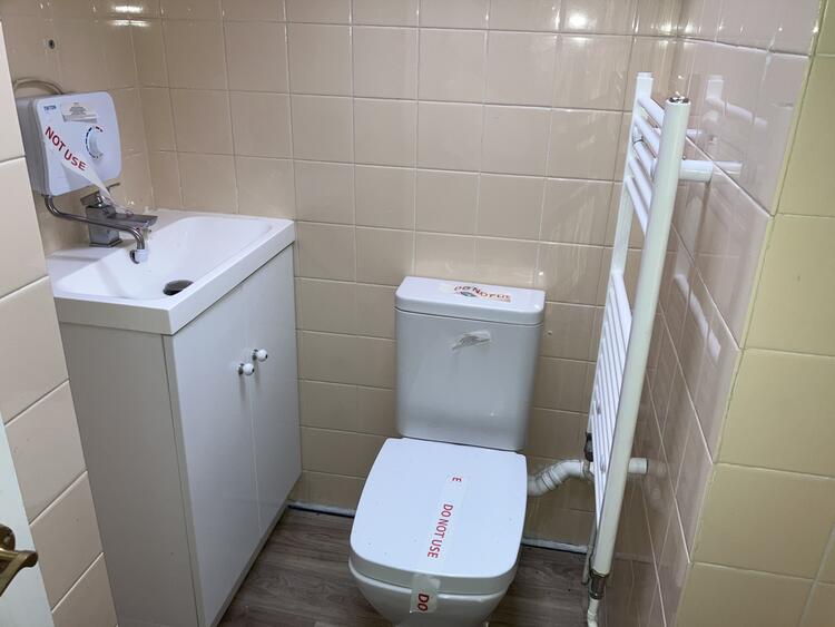 With low flush W.C. and wash hand basin.