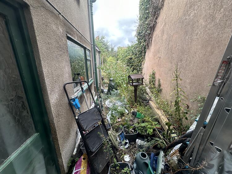 Garden to front offering potential for a small parking space, subject to permissions. Good size rear garden in need of cultivation.