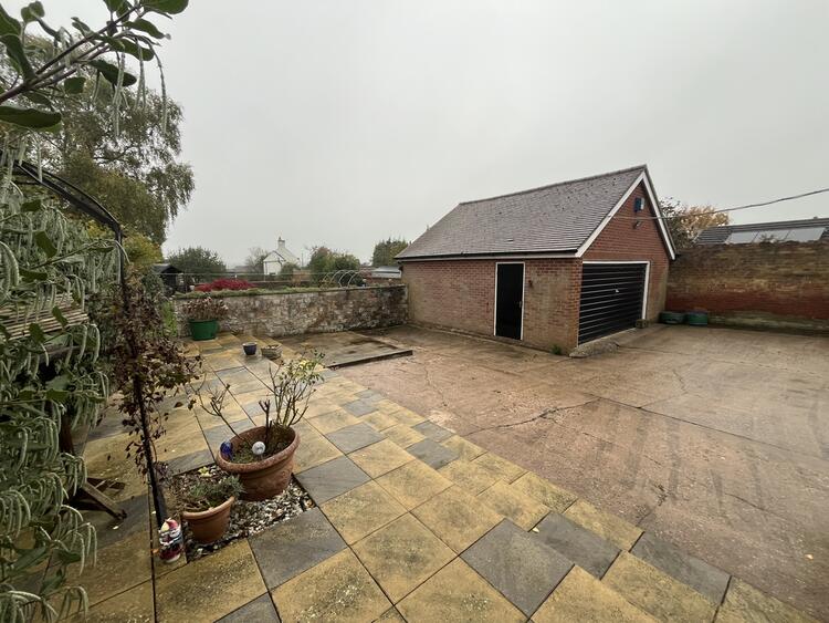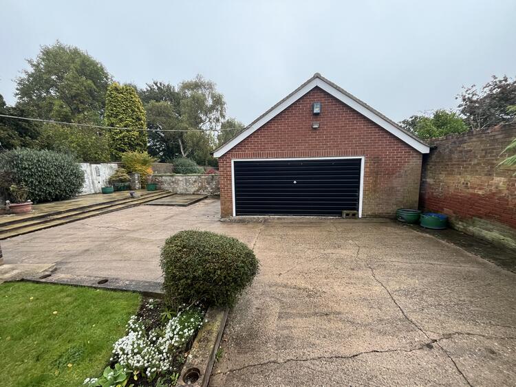 Lawned garden to front. Driveway to side with ample parking. Large DOUBLE GARAGE. Rear gardens with large paved seating area, extensive lawns and stocked borders.