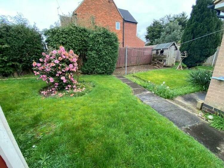 A corner plot giving good sized gardens with lawns and stocked flower beds. Lapsed planning permission for a detached garage.