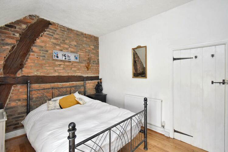 4.00m x 3.17m (13ft 1 x 10ft 4) - With high ceilings, radiator, exposed solid wood flooring, exposed timbers, exposed brick wall, exposed stone wall, double glazed window with pleasant views to front with fitted blind and internal latched door.