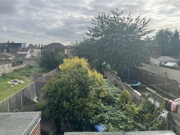 Good size rear garden in need of cultivation with shared side access.