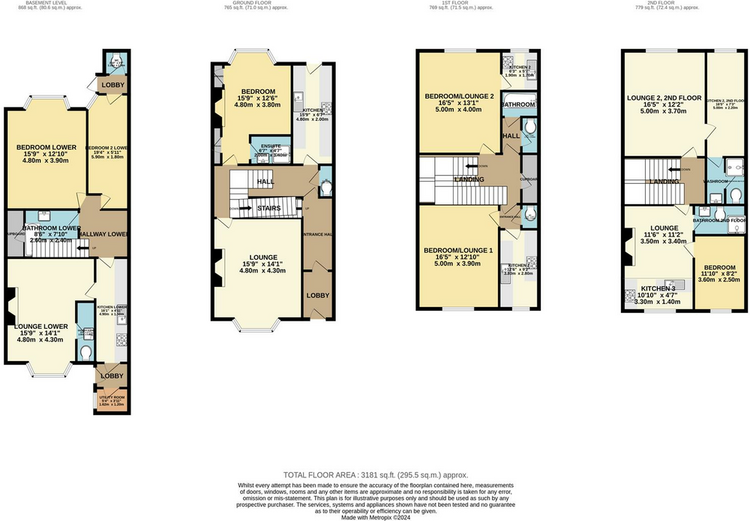 The current owners apartment is the largest and could be let for around £500 per calendar month increasing the returns to £2100 per calendar month, £25,200 per annum giving a potential yield of 19.38% against guide price.