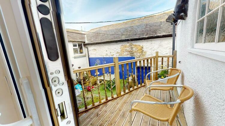 Access to cellars, retail room two, double glazed French doors opening into a small and raised decked patio to rear, fitted cabinet with wash basin and Triton electric shower, enclosed cupboard, woodgrain effect floor finish, panelled radiator.