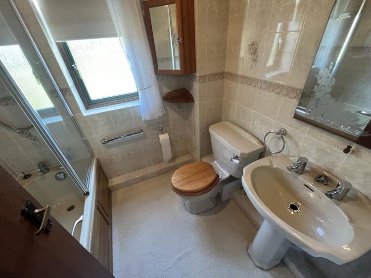 Comprising low flush w.c. wash hand basin and panel bath with electric shower over. Tiled walls and window to rear.