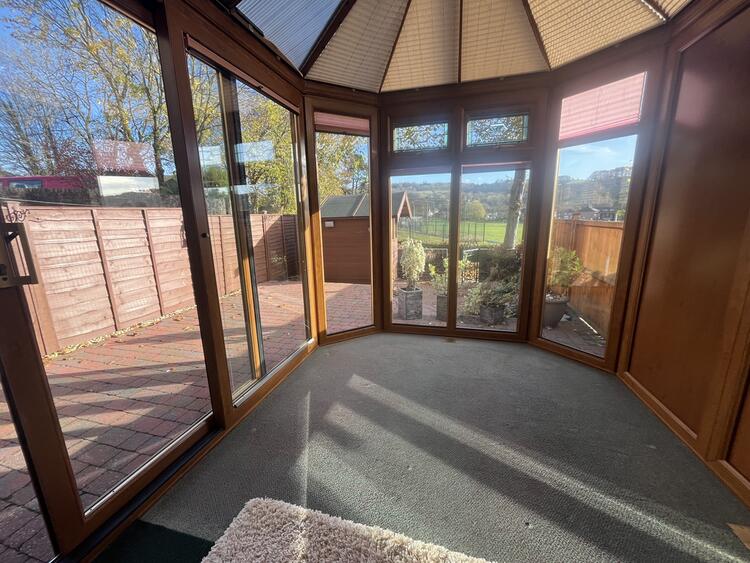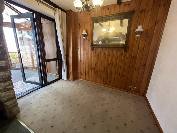 With electric radiator and patio doors to garden. Views over local Cricket Pitch.