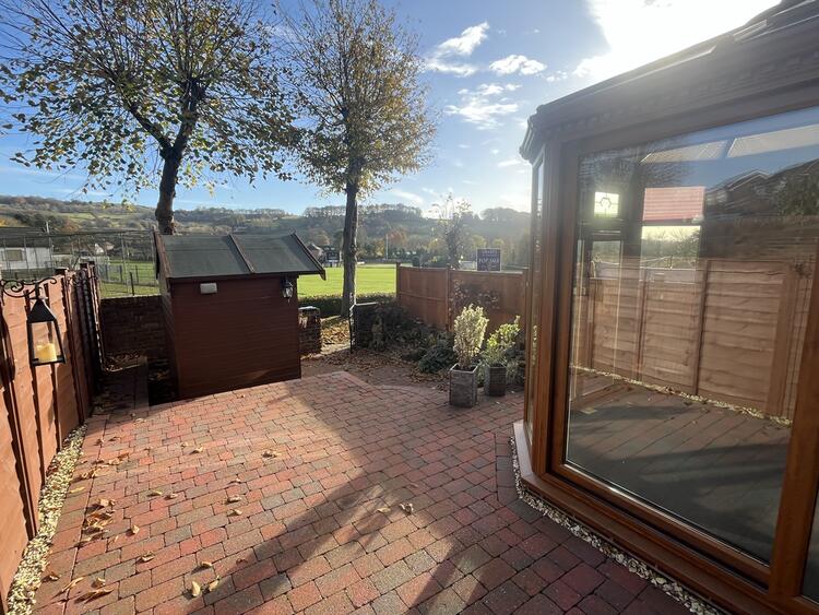 Paved garden to front over looking a green area. Enclosed rear garden with paved seating area, timber shed and superb views over the Cricket pitch and rolling hillside landscape beyond. Residents parking.