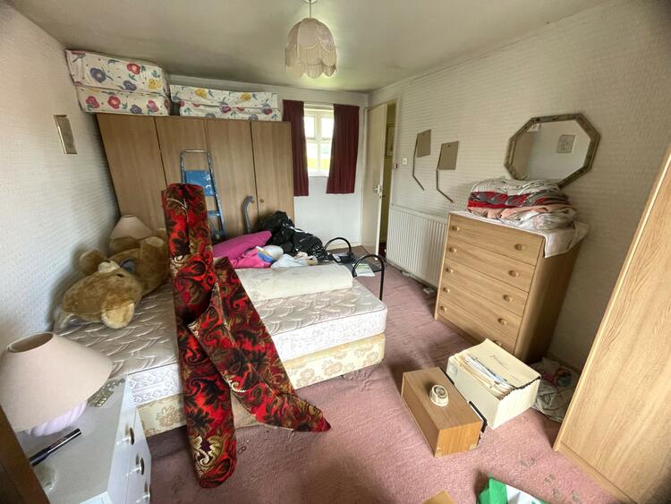 The property requires clearance and updating throughout, although there is a central heating system and wood framed double glazing.