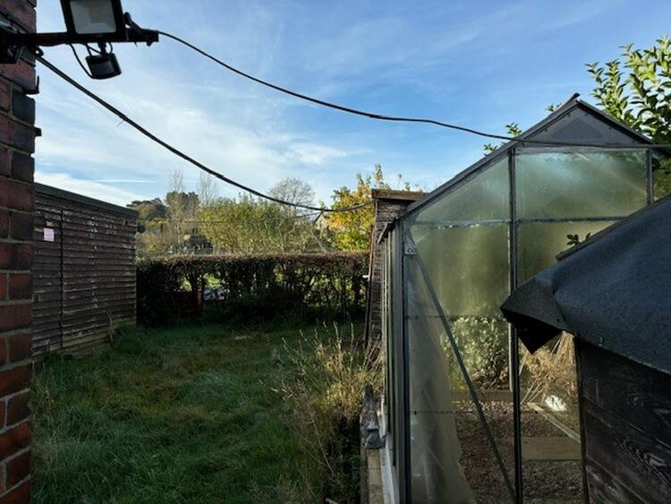 The property is set well back from the pavement edge behind a deep lawned fore-garden with pathway leading to the entrance door and natural stone walling. Potential driveway (subject to the necessary planning permission). Gardens to side and rear, non-overlooked and mainly laid to lawn with outside store, shed and greenhouse