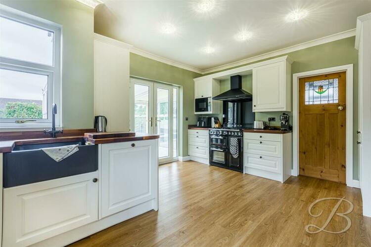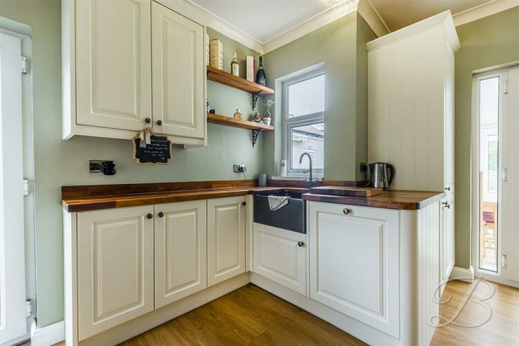 Complete with a range of matching cabinets, inset sink and drainer, integrated appliances and a window to the rear. There is also access to a handy utility and external access to the side elevation.