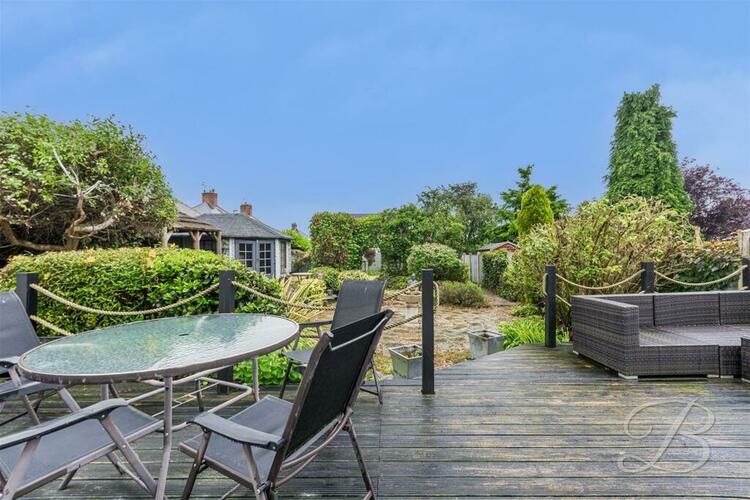 Low maintenance frontage with a large paved driveway along with a garage allowing for off road parking. Extensive garden to the rear consisting of decked seating areas, lawn area, pergola, surrounding shrubs and shed.