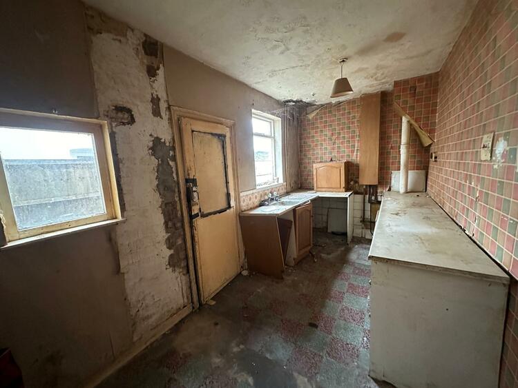 With basic units and sink, two windows to side and door to rear garden.