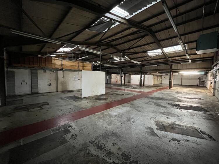 The building is a steel portal framed infilled with brick/blockwork. There is a concertina loading door which measures 4.8 m (w) x 2.3 m (h).
