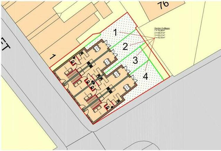 Land for sale with outlined planning permission for Four x 2 bedroom terraced properties.