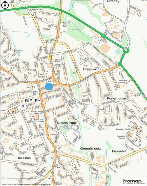 Ripley is a busy market town located in Derbyshire, approximately 3.5 miles northeast of Belper and 10 miles north of Derby city centre. The property is prominently located within the town and sits adjacent to Ripley’s public library and within close proximity to national occupiers including Costa Coffee, Greggs, Birds Bakery and Card Factory.