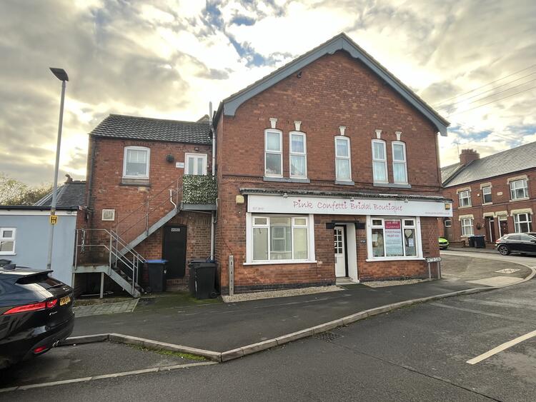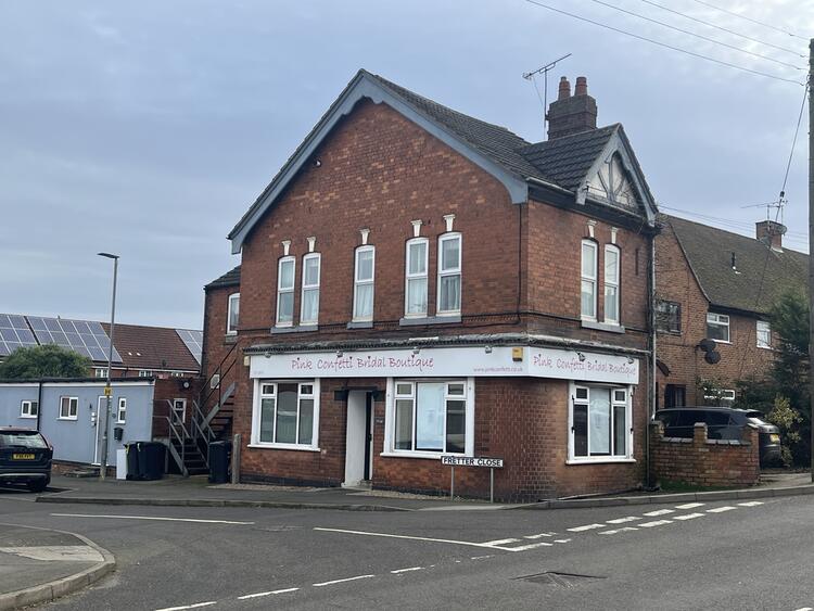 A two storey mixed use property standing on a corner plot.