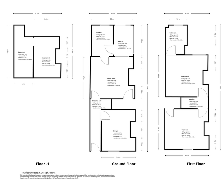 The property includes an entrance hall, lounge, dining room, kitchen, lean-to, staircase and landing, two bedrooms, a family bathroom, and outdoor space.