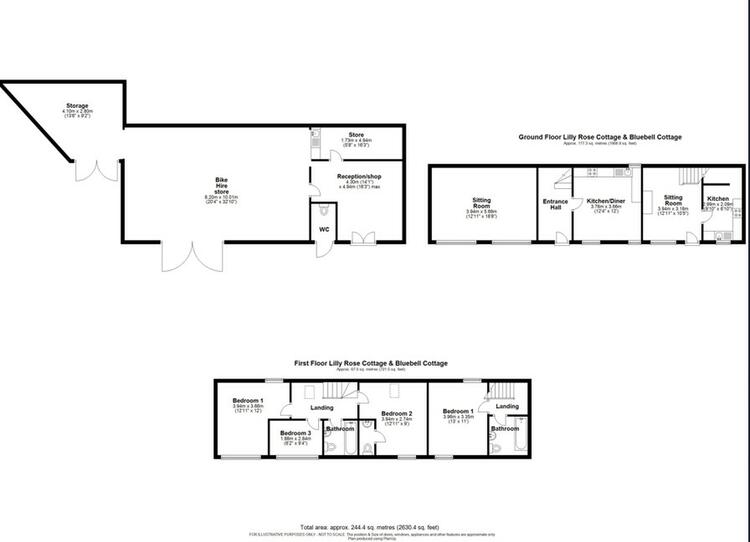 Attached to the cottages is a reception/shop/potential small tearoom, with a wc and door leading to a storage room. With double door is a large workshop/garage used to store the bikes used in the Cycle Hire established business.