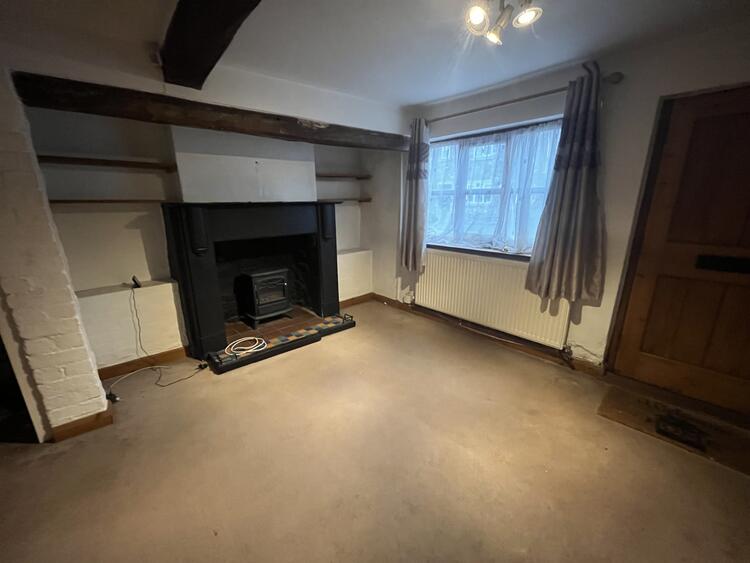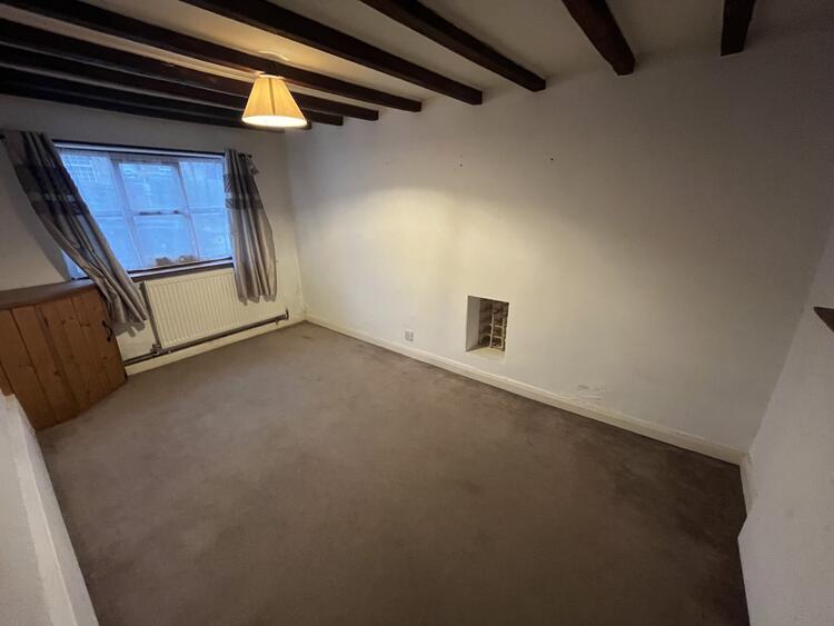 With radiator, inglenook fireplace, window to front and stairs off.