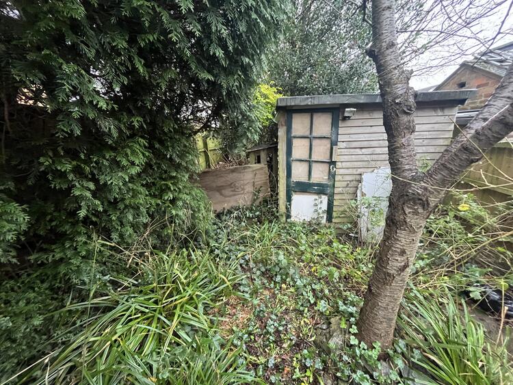 Good size rear garden with lawned area and shared side gated access.