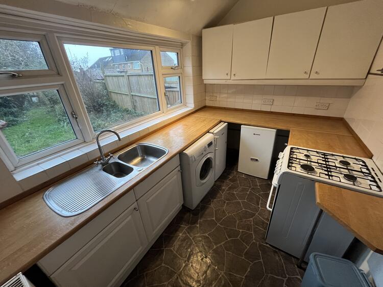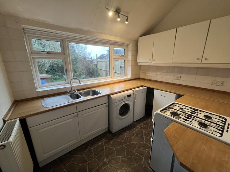 Having base and wall units, sink, work surfaces, radiator and window over looking the rear garden.