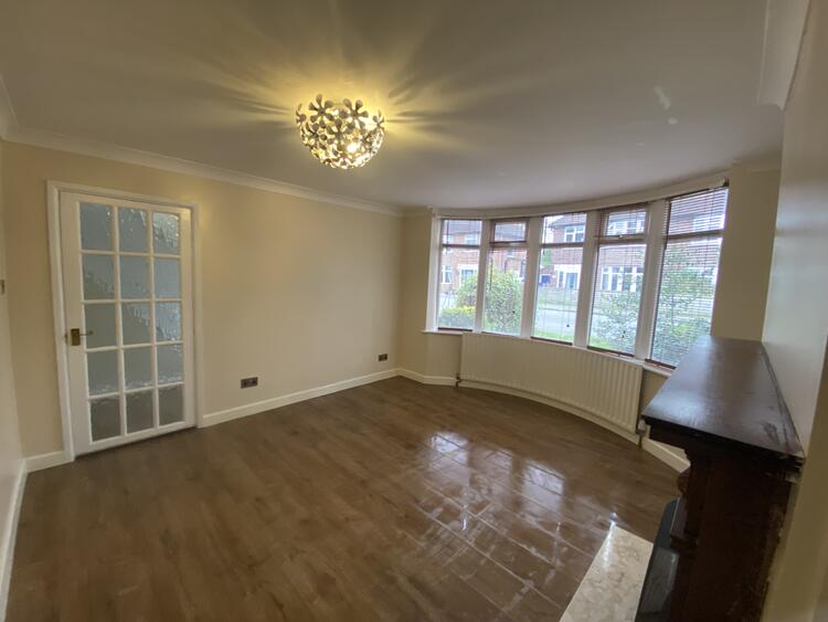 PVC double glazed bay window to the front aspect, gas fire with Adam-style mantle, laminate flooring and radiator.
