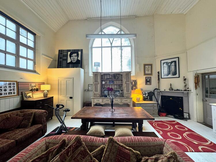 Newland School Hall provides around 2,200 sq.ft of floor living space. The property can comfortably provide four bedrooms, including a mezzanine bedroom overlooking an impressive 23ft x22ft living space with 18ft ceiling height with its dominant feature being the large gothic window which delivers superb natural light enhancing the character of the room.
