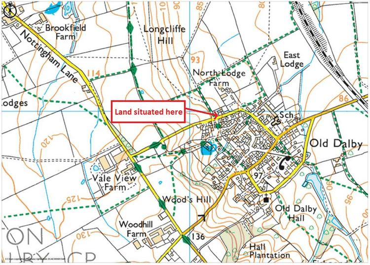 The land is situated along Longcliff Hill to the north of the village of Old Dalby in Leicestershire, approximately 6 miles north west of Melton Mowbray and 9 miles north east of Loughborough. Located opposite the junction of Debdale Hill.