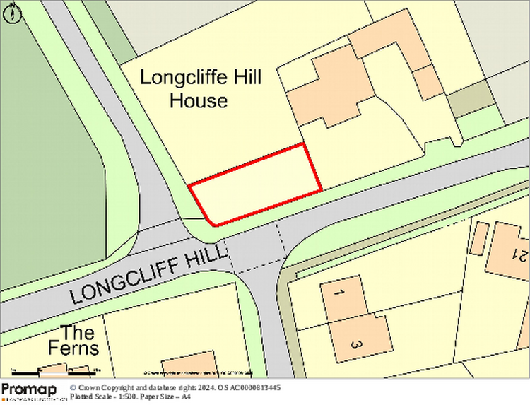 The land is accessed via a wooden gate directly off Longcliff Hill.