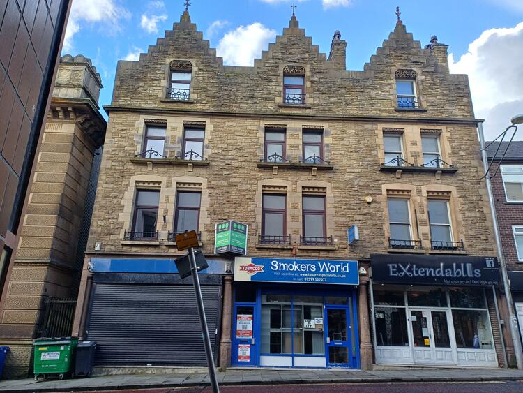 A mixed use retail/residential property occupying a prominent location in the heart of Blackburn. The property is located on Higher Church Street, adjacent to one of the entrances to The Mall and also to Lloyds Bank. Higher Church Street is a busy thoroughfare and typical occupiers on the street are local independent operators, such as beauticians, vaping shops and long-standing pubs with good levels of footfall down the street.