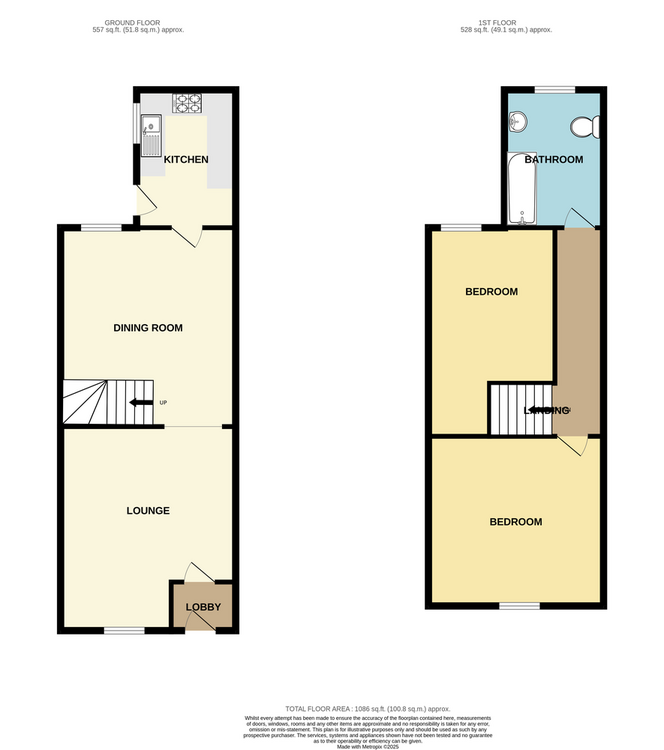The property offers 2 reception rooms, kitchen, 2 bedrooms and first floor bathroom. Benefitting from gas central heating and UPVC double glazing.