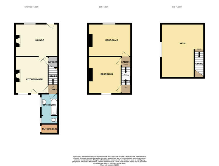 The accommodation comprises, lounge, kitchen, rear lobby, ground floor bathroom. The first floor landing provides access to two bedrooms, the rear with door to staircase leading to original attic room.