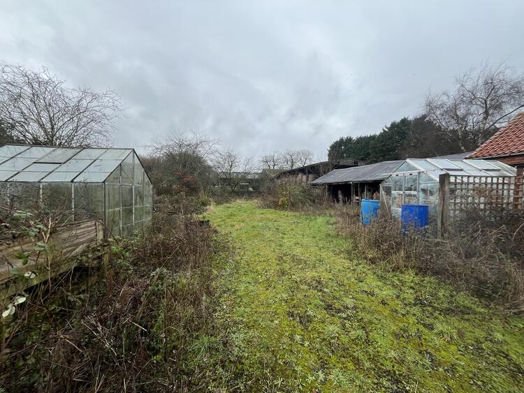 A 3 bedroom detached bungalow standing on a large plot with brick barns to the rear.