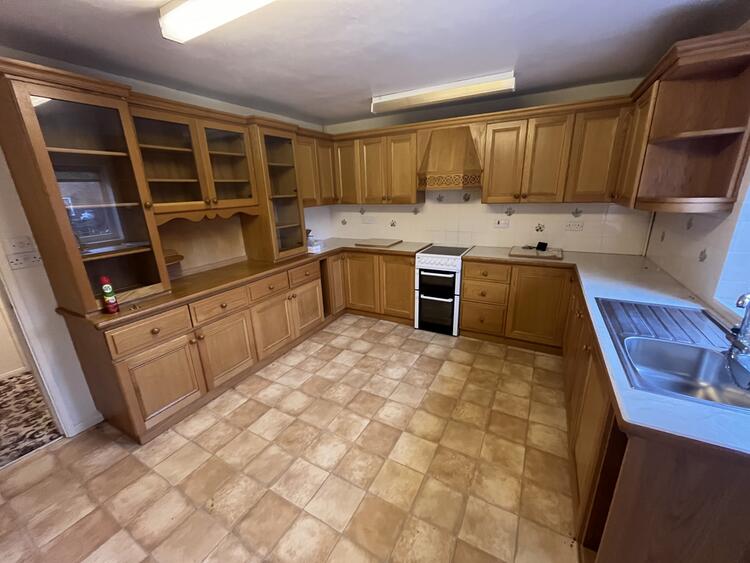 With a Barrett and Swan solid wood range of base and wall units, sink, space for appliances, radiator and window to front aspect.