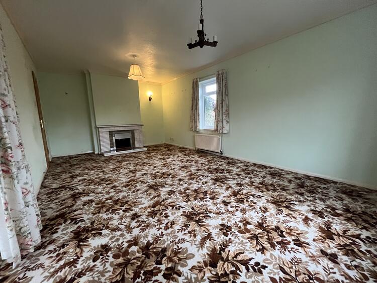 With open grate fireplace, radiator, windows to front and side aspect and patio doors opening into the conservatory.