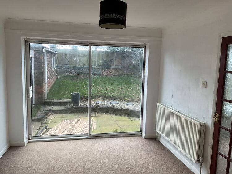 With radiator, coved ceiling, patio doors to the garden and internal door into the kitchen.